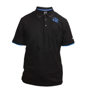 Okuma Black motif short sleeve polo shirt